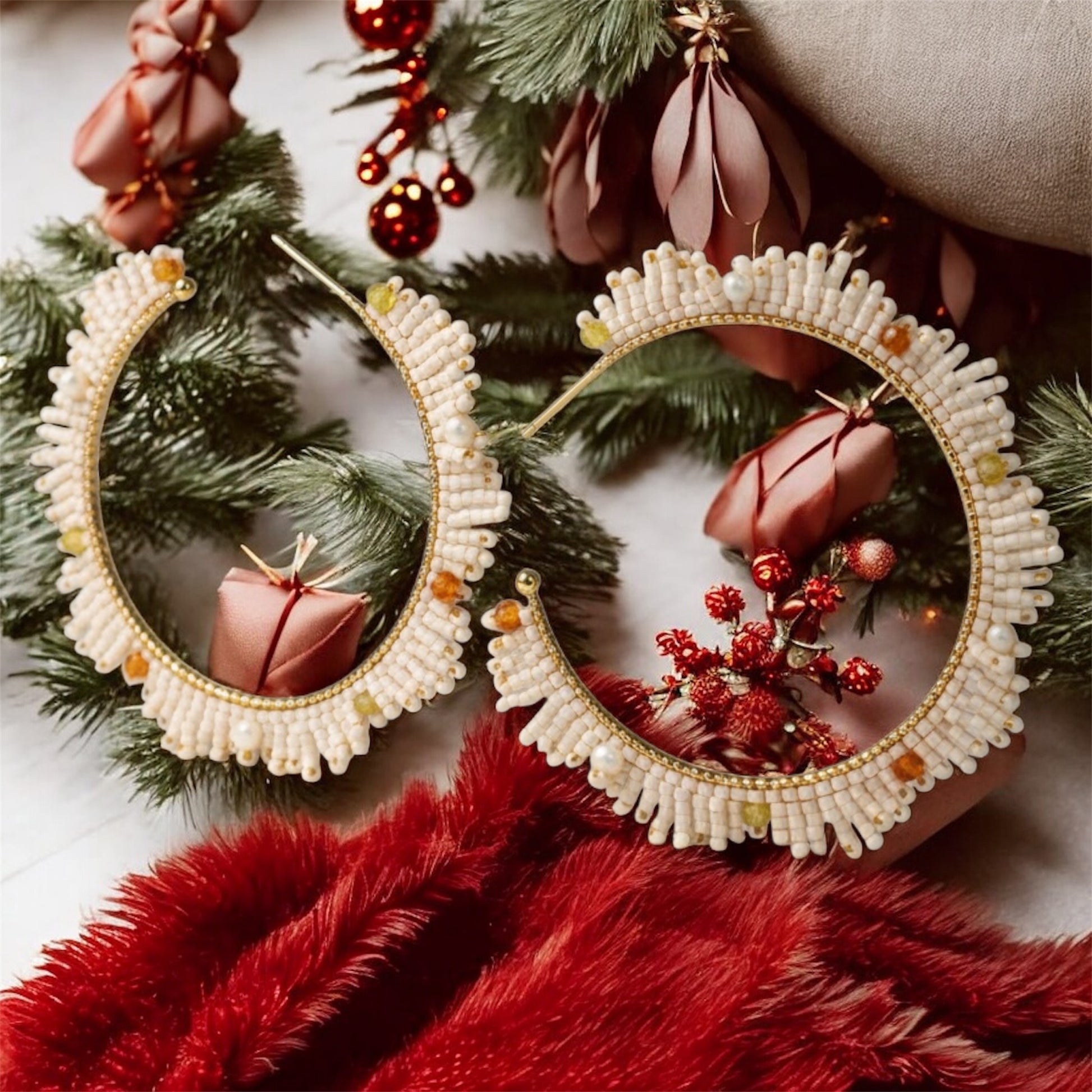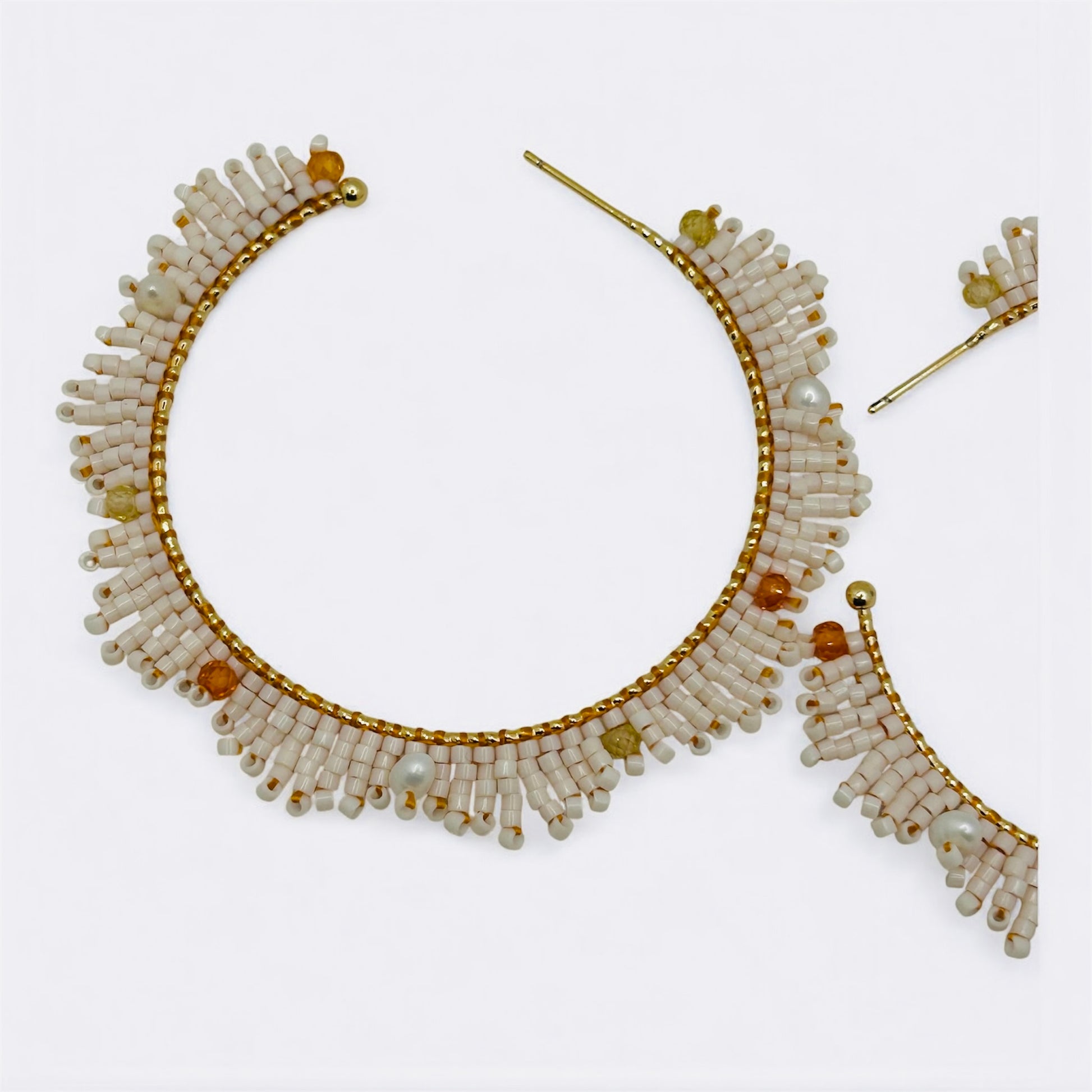 Soft, luminous, and delicately radiant — our Aurora Petal Hoops bloom with natural elegance. Hand-woven with premium Miyuki seed beads, sparkling zirconia accents, and tiny pearl details, each pair creates a refined petal-like texture that embraces subtle movement and luxury.