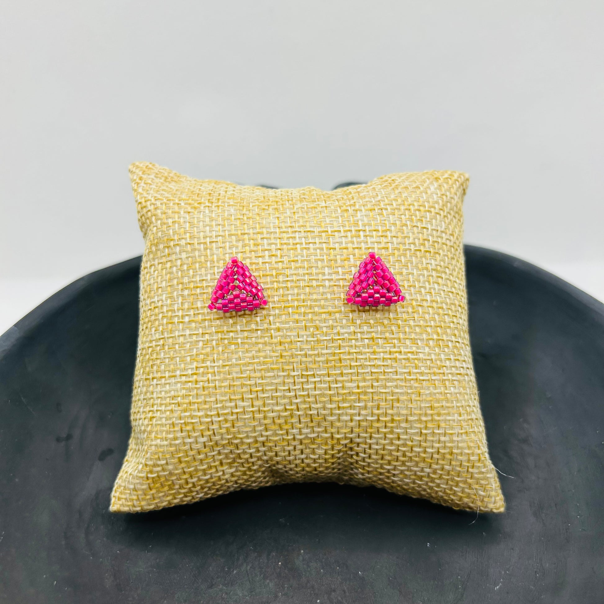 Handwoven with tiny seed beads in a vibrant pink shade, these stud earrings are perfect for lovers of fun, modern style. Their minimalist shape keeps them simple and clean, while the vivid tone makes them stand out effortlessly.