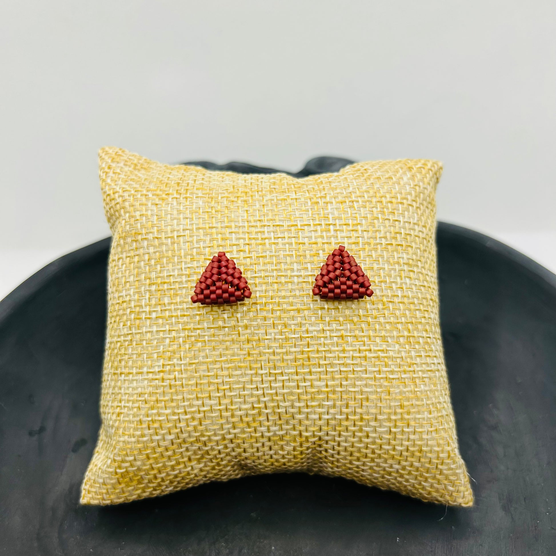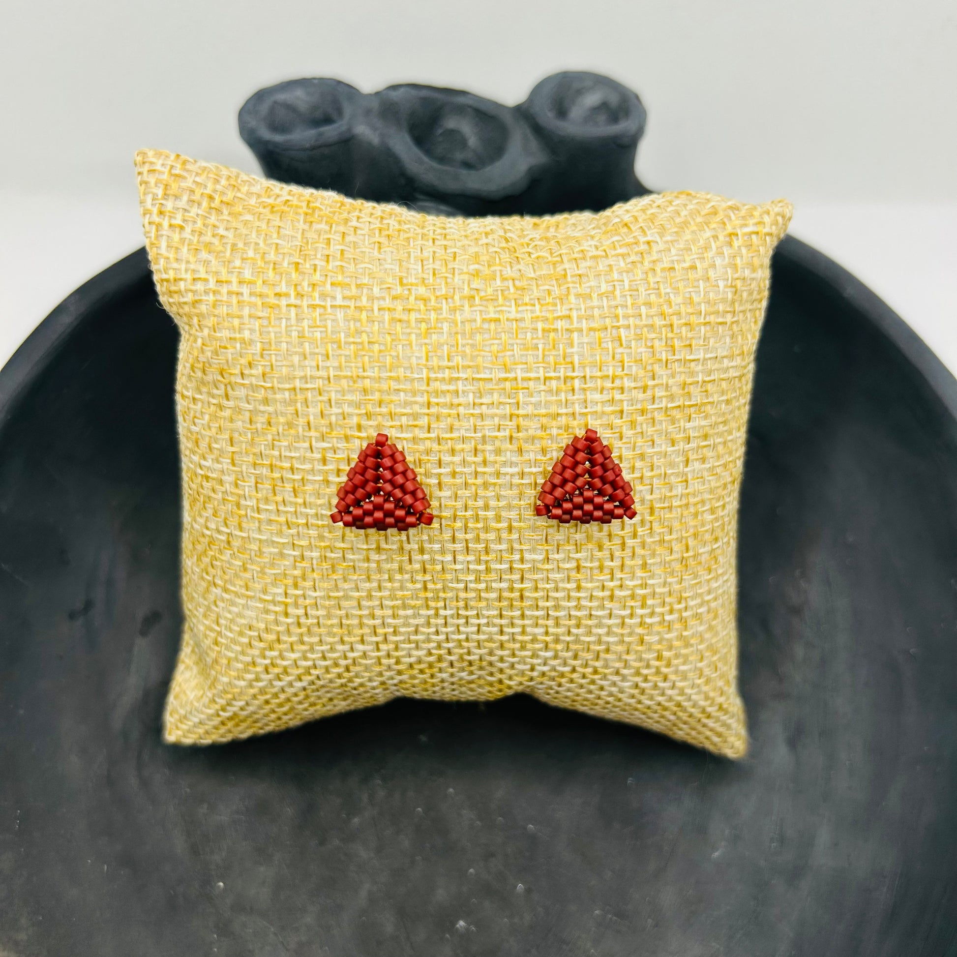 Minimal, warm, and beautifully handwoven — Rusty Red Triangles bring a subtle touch of boldness to your everyday style.