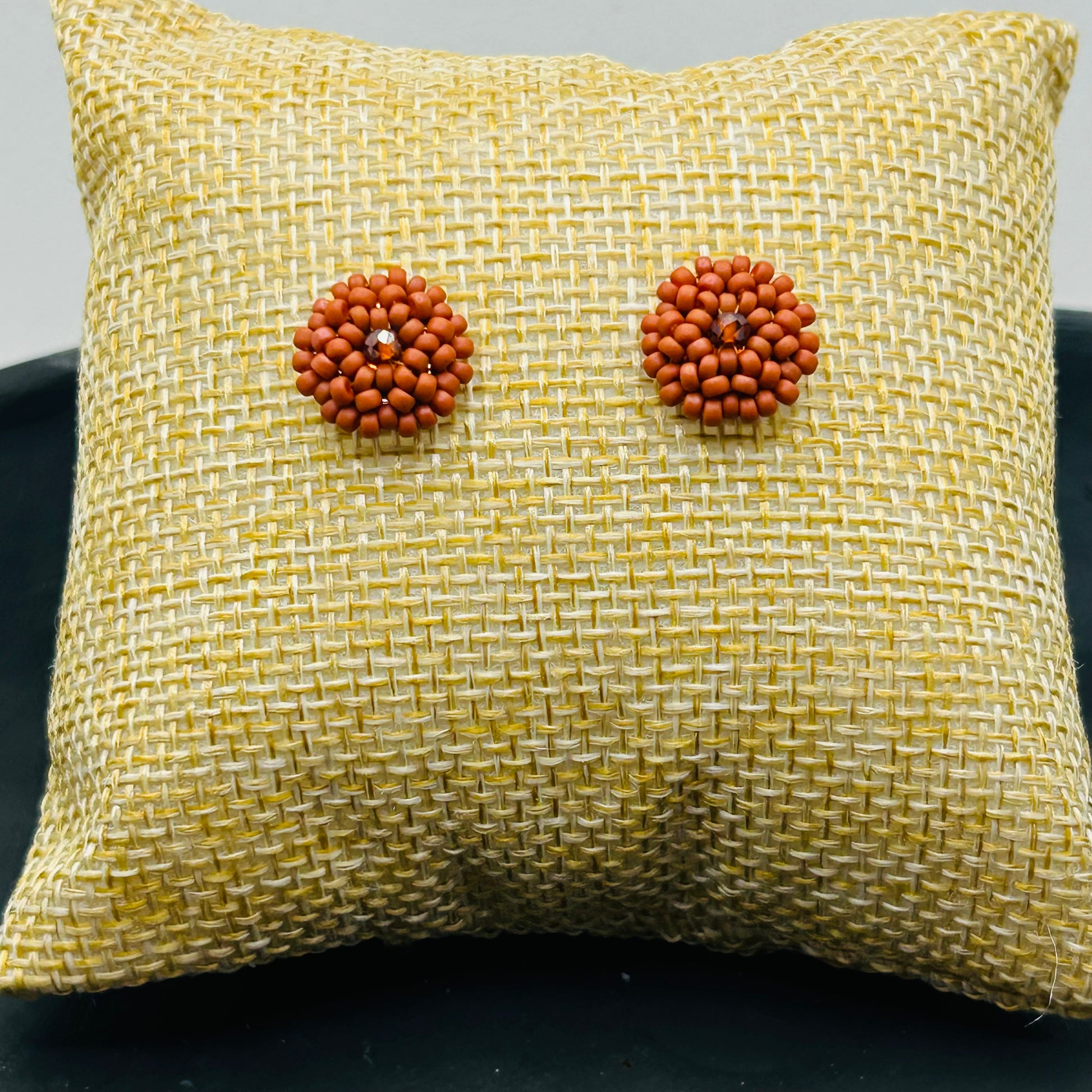 Each pair is made with tiny seed beads woven into a soft floral shape, giving them a simple yet striking presence. Their terracotta color reflects nature, warmth, and grounded beauty, making them perfect for everyday wear.