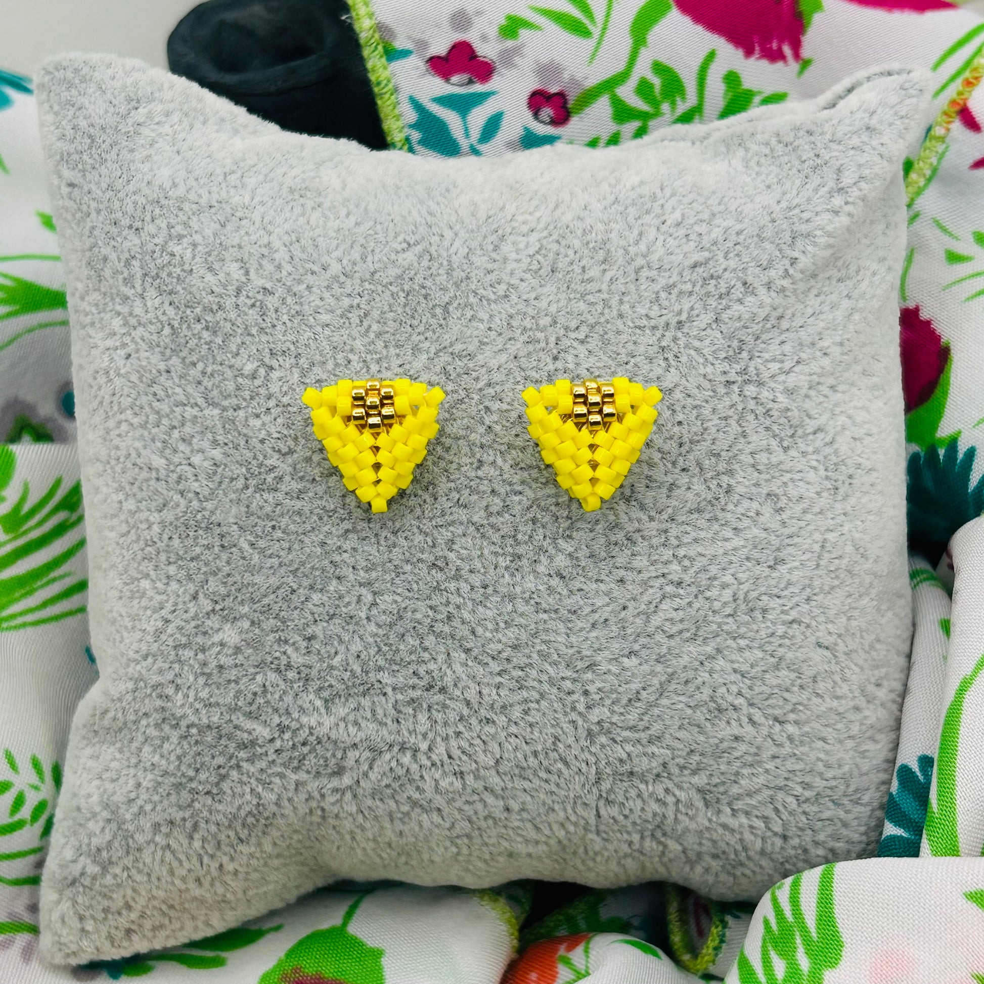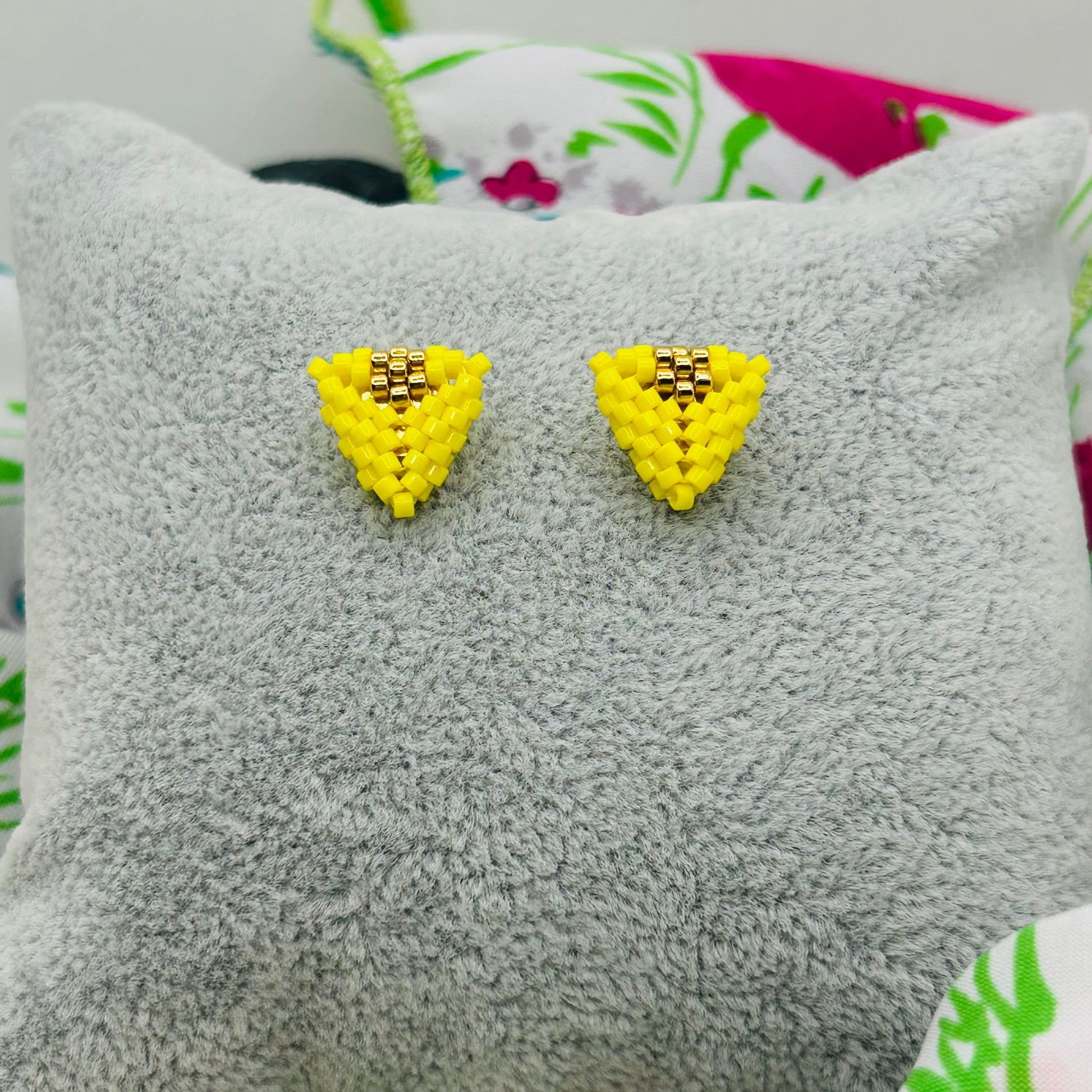 Hand-woven in vibrant yellow with 24K TOHO AIKO gold accents, these lightweight studs add brightness, joy, and simplicity to any look.